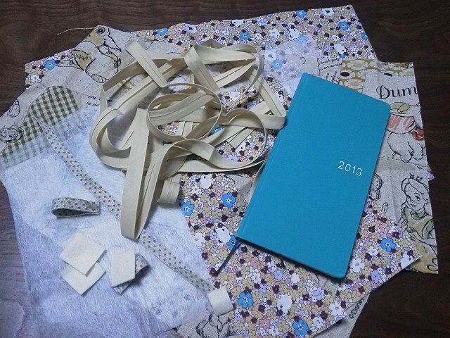 今まで作った小物と布を合わせてみました。というか、これくらいしか使えそうな布がなかっただけ。